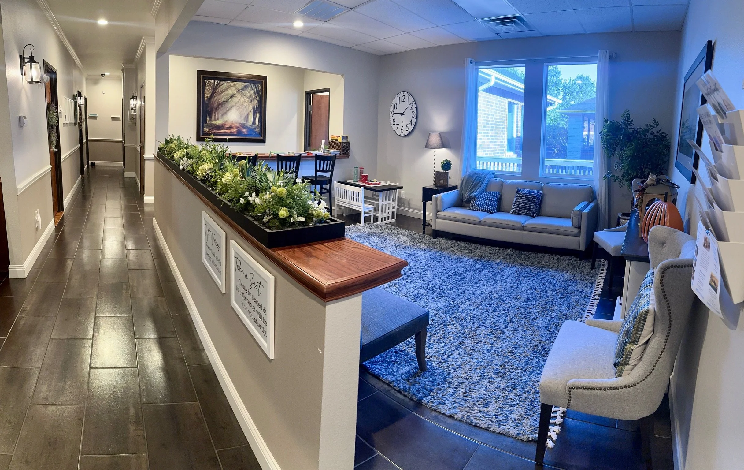 Our office is conveniently located in Lewisville, right off the intersection of 121 and I-35E, in a quiet residential area, separate from business parks and busy traffic. Can’t make it into the office? No worries – many of our therapists can offer you a virtual appointment.